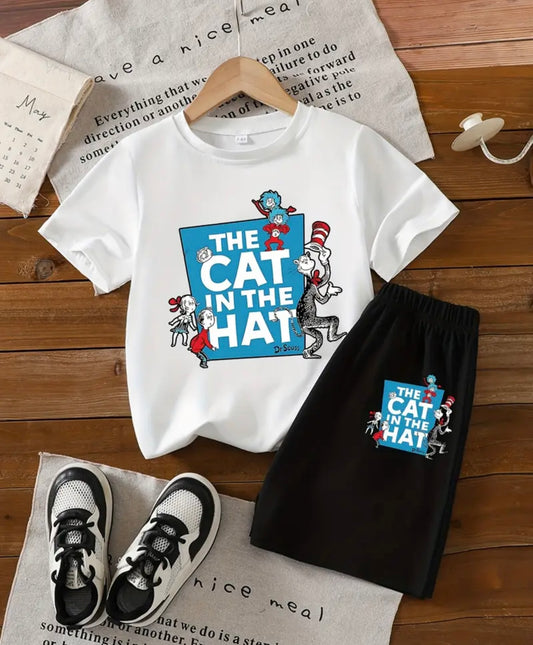 "THE CAT IN THE HAT" Print T-shirt and Shorts Set