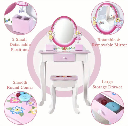 Fairy Wooden Vanity Table & Stool Set