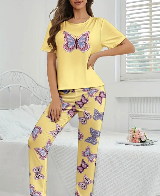 Women’s 3pcs Pajama Set - Cozy Highland Cow Print Loungewear with Short Sleeve Top