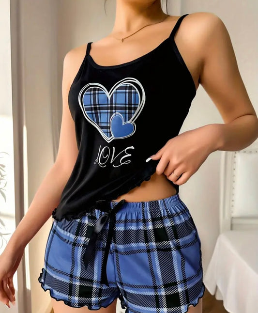 Women's Sexy Heart Plaid Spaghetti Strap Pajama Set