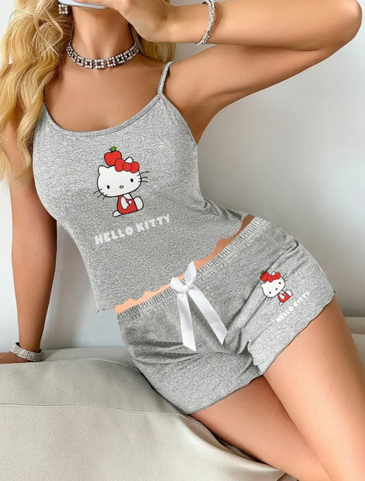 Summer Women's Camisole Shorts with Lip Letter Print Pajama Set