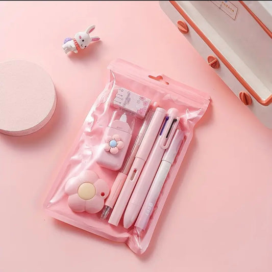 (Pink Set) Student School Office Set Stapler Scissors Tape Lifter Staple Pin Stationery Set