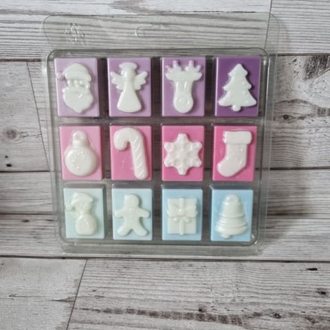Set of 12 individual soy wax melts in the following cosy, Christmas scents: