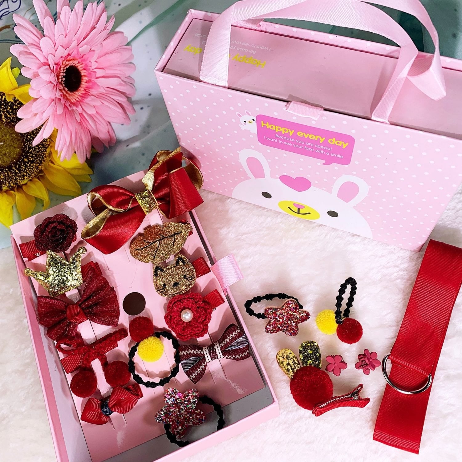 18pcs Girls Hair Accessories Boxed Gift Set – Wine Red