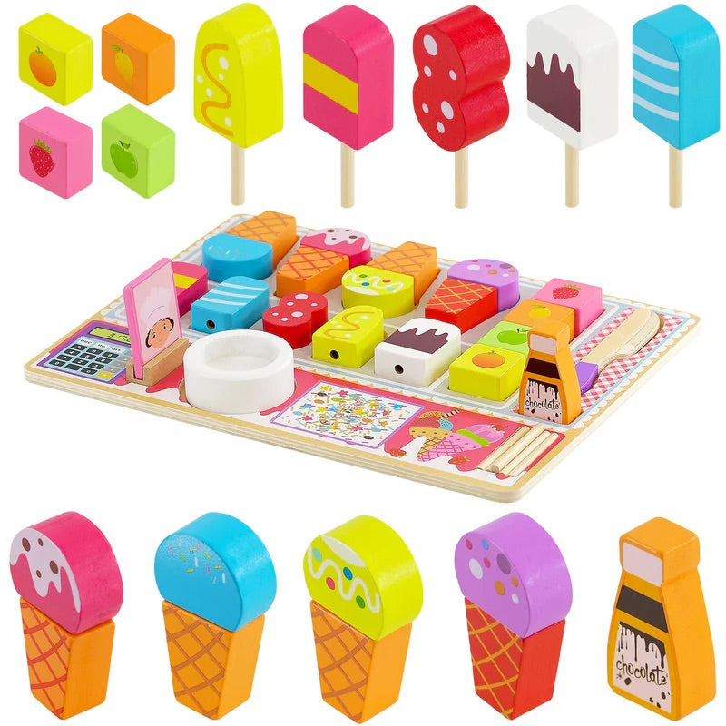 Kids Wooden Ice Cream Shop Set Role Play Toys